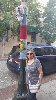 Lastly- we noticed that people apparently had knitted coverings for lampposts in the downtown Asheville area (?) um.... why??? Its called "KNIT- BOMBING" - kind of like someone intrusively PHOTO-BOMBS a photo, we may guess that these knittings intrude on our daily lives (?)